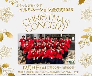毎年恒例!郡家駅コミュニティ施設ぷらっとぴあ・やずにてイルミネーション点灯式とクリスマスコンサートを開催します。