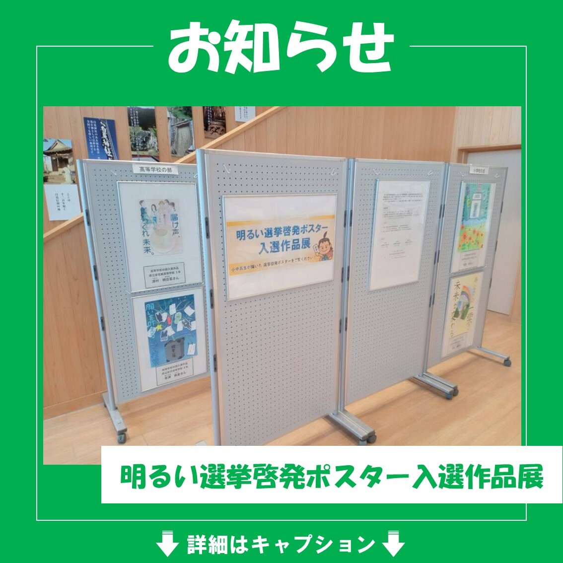 現在郡家駅コミュニティ施設 ぷらっとぴあ・やずにて明るい選挙啓発ポスターコンクール入選作品の展示を行っています。全国の児童・生徒か…