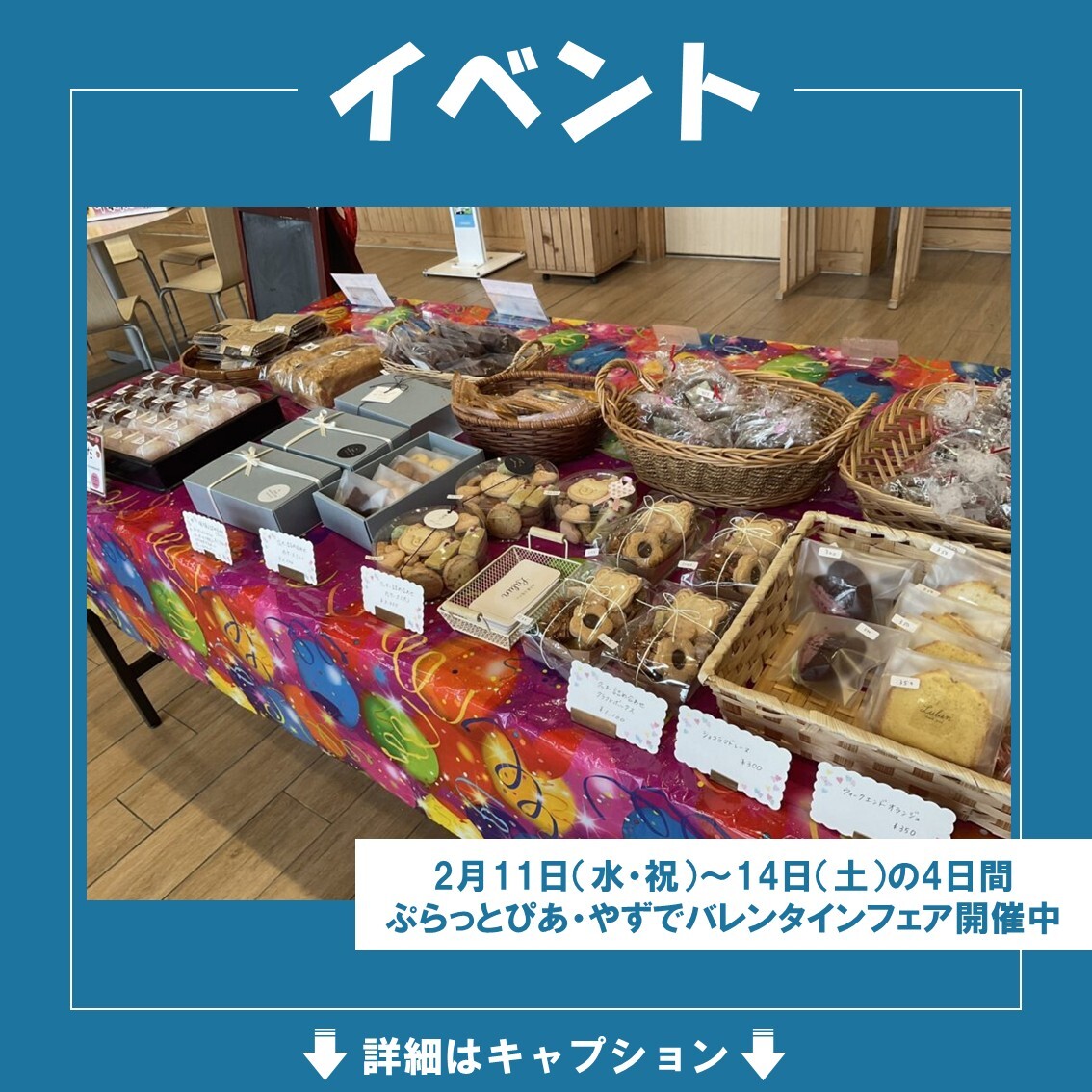 郡家駅コミュニティ施設「ぷらっとぴあ・やず」では、本日2月11日(水・祝)~14日(土)の4日間、バレンタインフェアを開催しています。 …