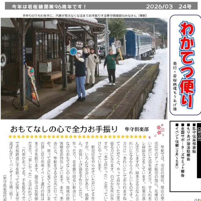 八頭町観光協会HPやずナビの特集「若桜鉄道もりあげ隊」にて、わかてつ便りの最新号「わかてつ便り 第24号」がご覧いただけます。 …