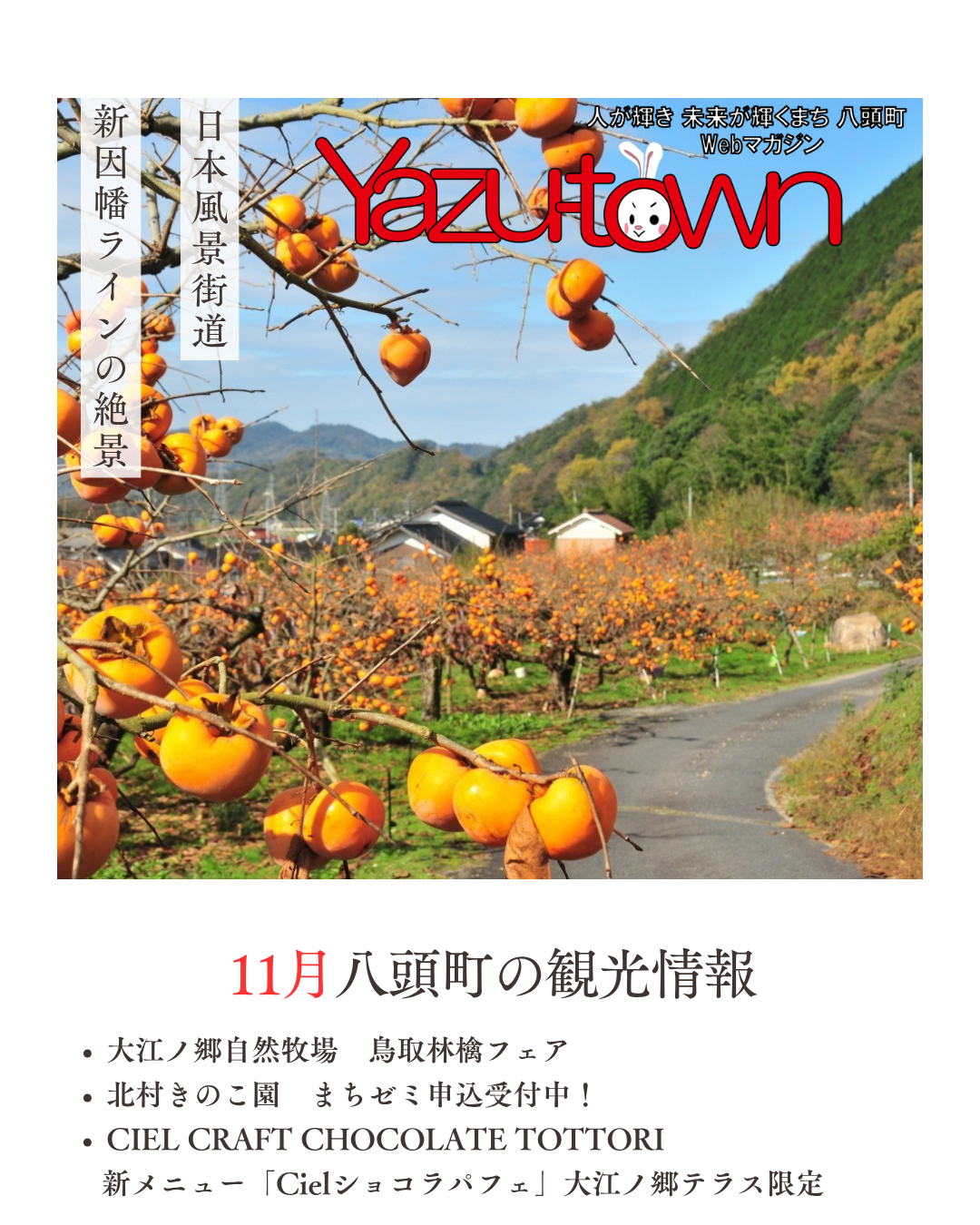 だいぶ山々も色づき、秋らしい景色になってきました。八頭町の柿畑もオレンジ色です。八頭町では、秋らしいイベントが11月もたくさん開催…