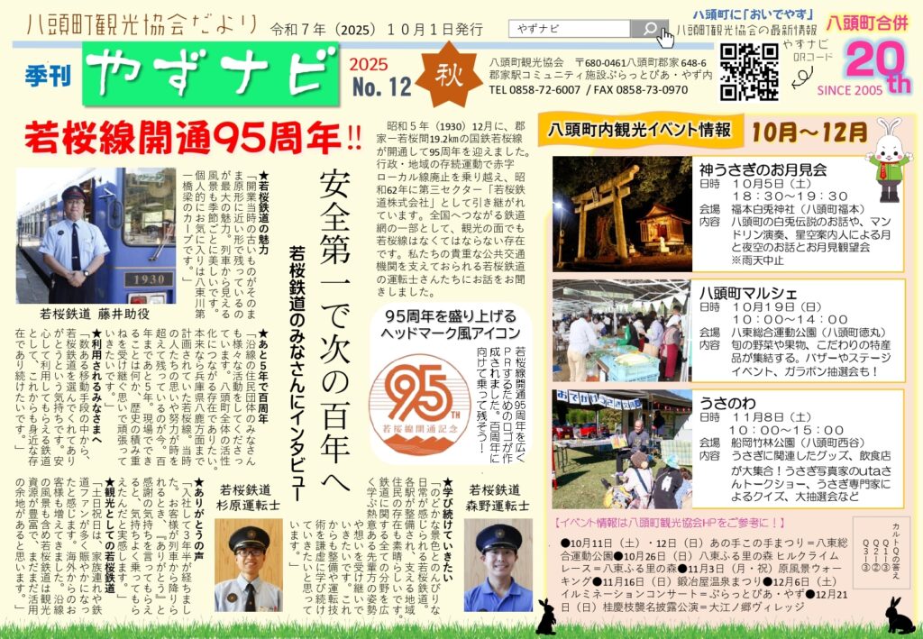 八頭町観光協会だより「季刊やずナビ2025 No.12秋」を発行しました。今回は以下のような内容です。