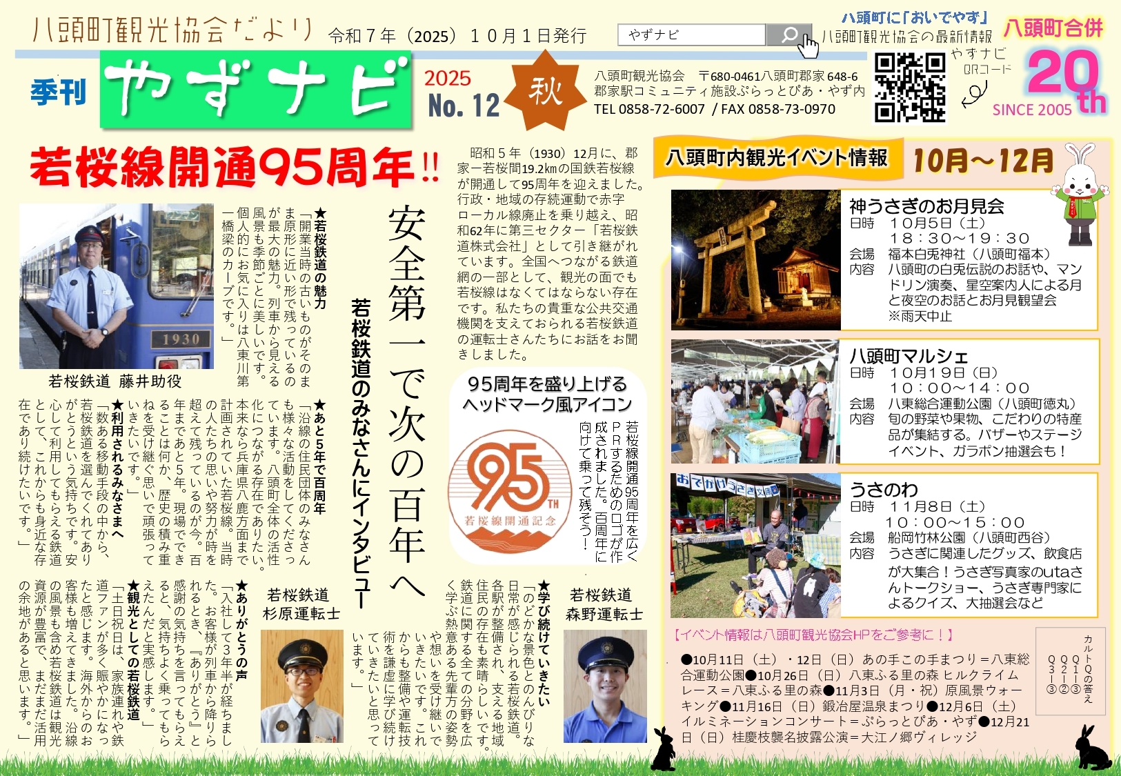 八頭町観光協会だより「季刊やずナビ2025 No.12秋」を発行しました。今回は以下のような内容です。