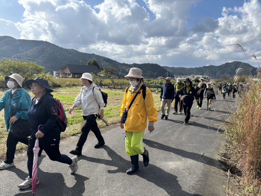 11月3日(月・祝)、第8回「八頭町原風景ウォーキング」を開催しました。この事業は、鳥取県八頭町の原風景を歩きながら地域への理解を深め、健康増進を図ることを目的としています。今回のコースは約7.5km。天候が心配されましたが、ウォーキング開始後は晴れ間が広がり、絶好のウォーキング日和となりました。