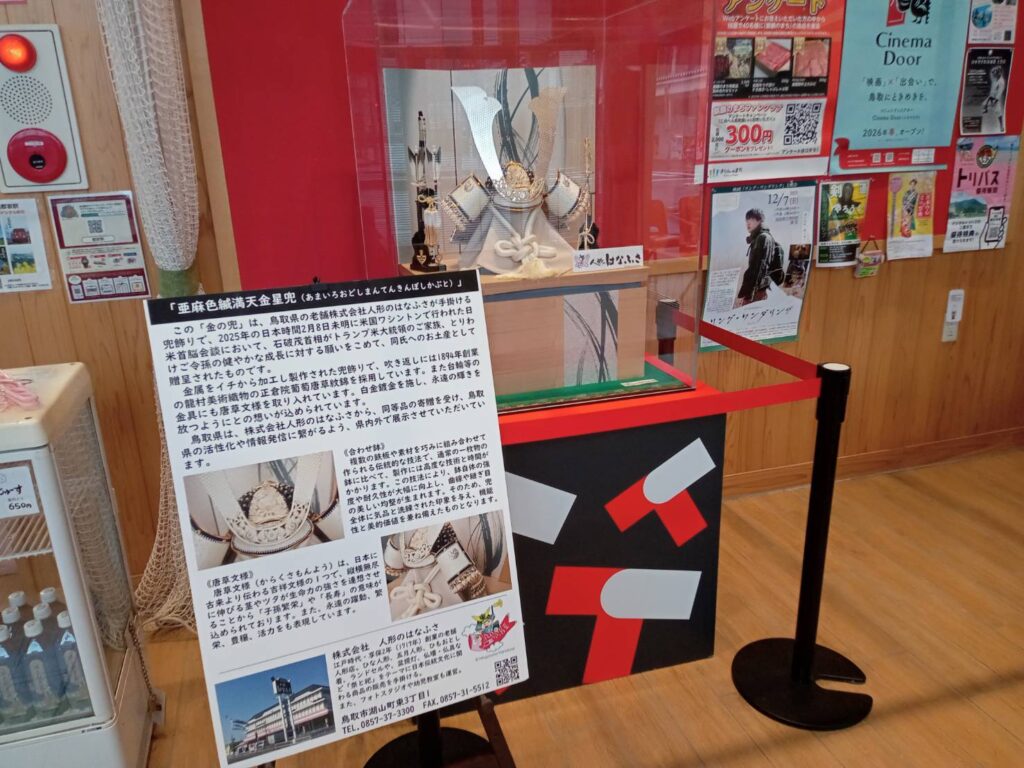 鳥取県では株式会社人形のはなふさから同等品の寄贈を受け、鳥取県の活性化や情報発信に繋がるように県内外で展示しています。郡家駅コミュニティ施設「ぷらっとぴあ・やず」では、2月末まで展示予定です。お近くにお越しの際はぜひご覧ください。