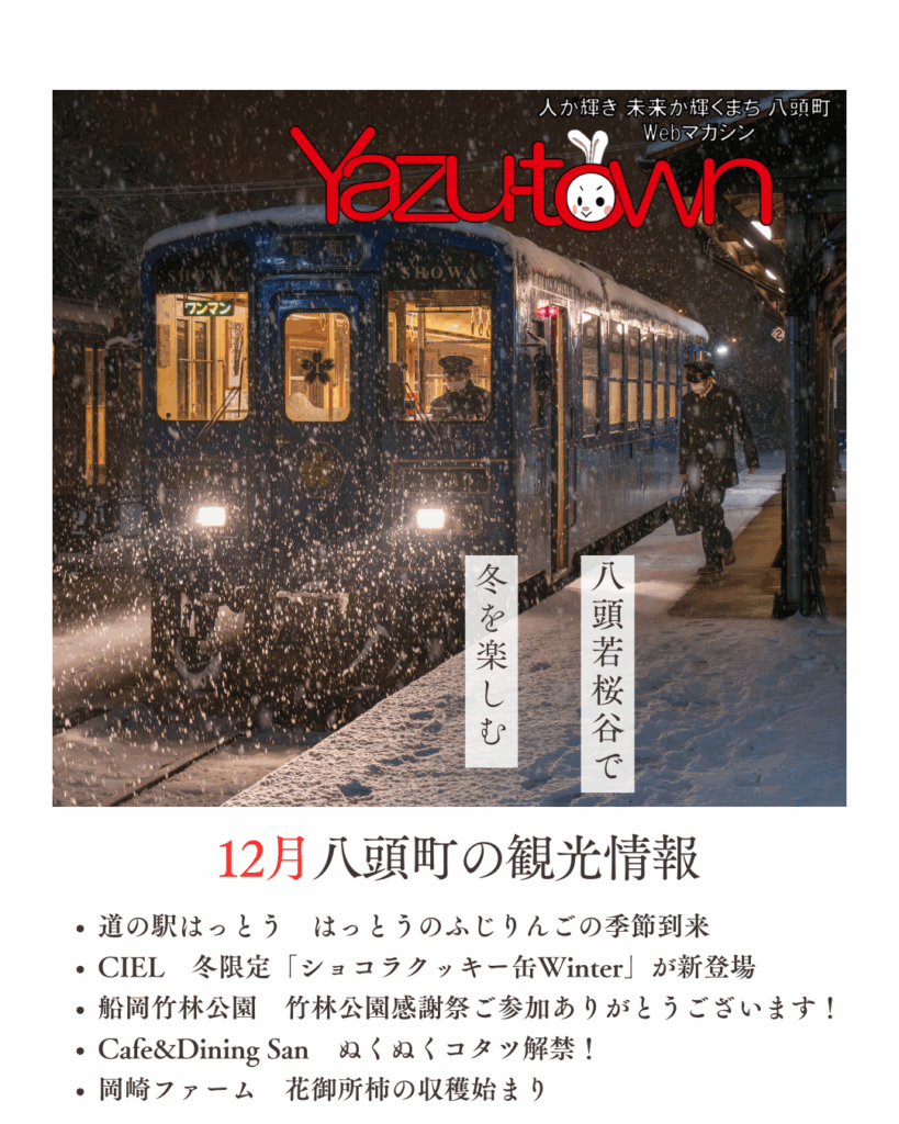 八頭町では、若桜鉄道因幡船岡駅での「2025因幡船岡駅あったかまつり」に代表される、冬らしいイベントが満載です!「若桜鉄道 1日フリー切符キャンペーン」も12月6日(土)から始まっていますので、是非八頭町に遊びに来てください。お待ちしています。