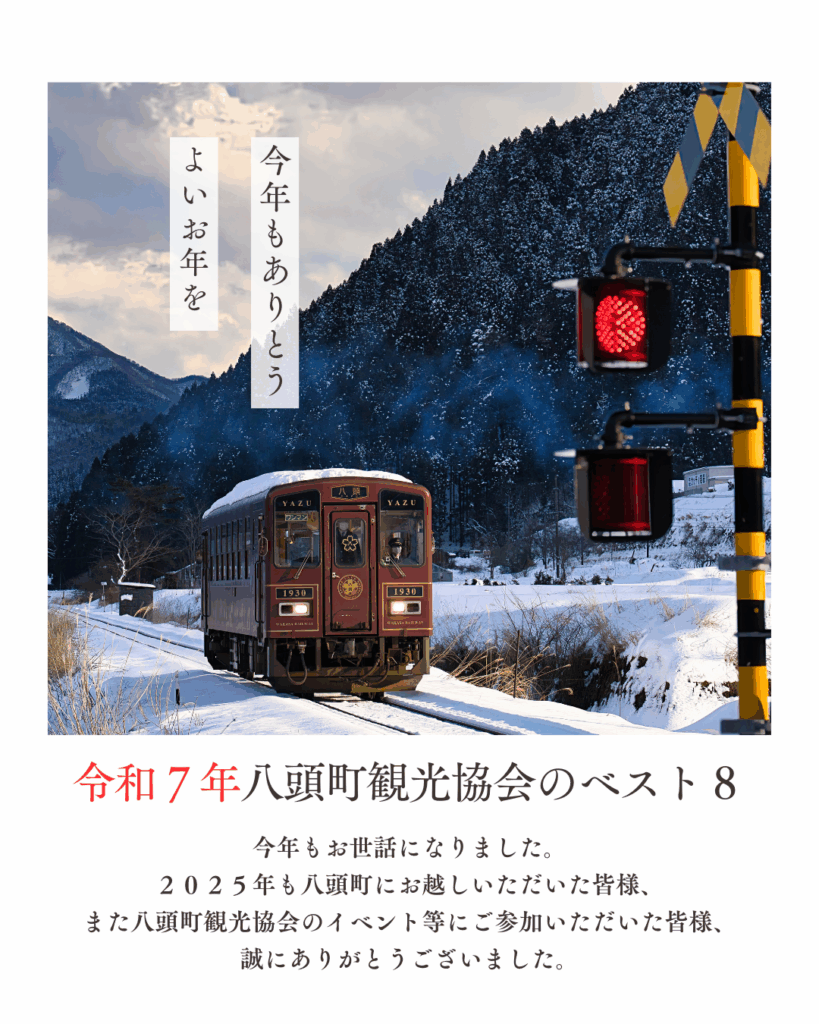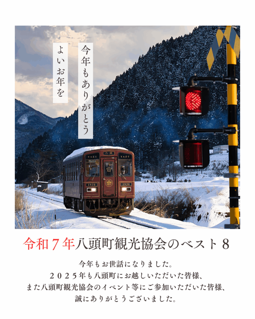 今年もお世話になりました。2025年も八頭町にお越しいただいた皆様、また八頭町観光協会のイベント等にご参加いただいた皆様、誠にありがとうございました。来年もよろしくお願いします。例年に引き続き八頭町の「8」にちなんで、独自の観点で昨年を振り返らせていただきます。