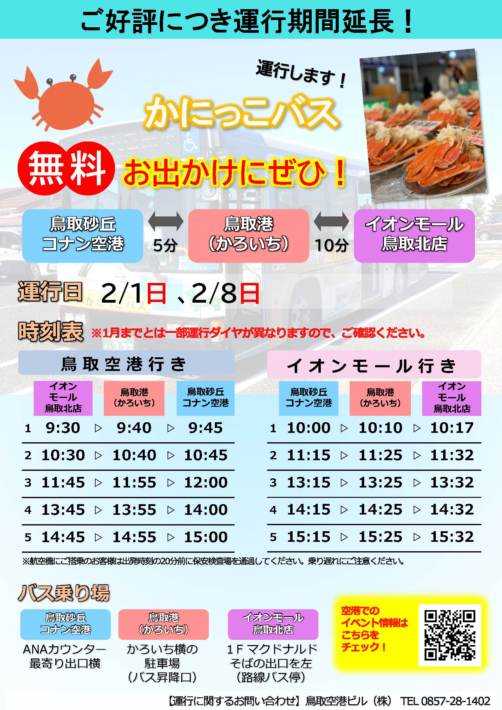 当日は、鳥取砂丘コナン空港ーかろいちーイオンモール鳥取北店間の無料シャトルバスが運行!